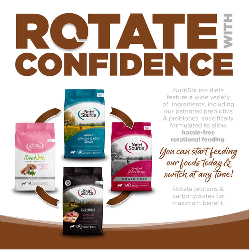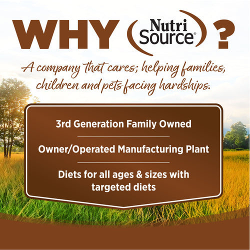 • NutriSource grain inclusive formulas deliver compact nutrition and include pre and pro-biotics to help support a healthy gut.